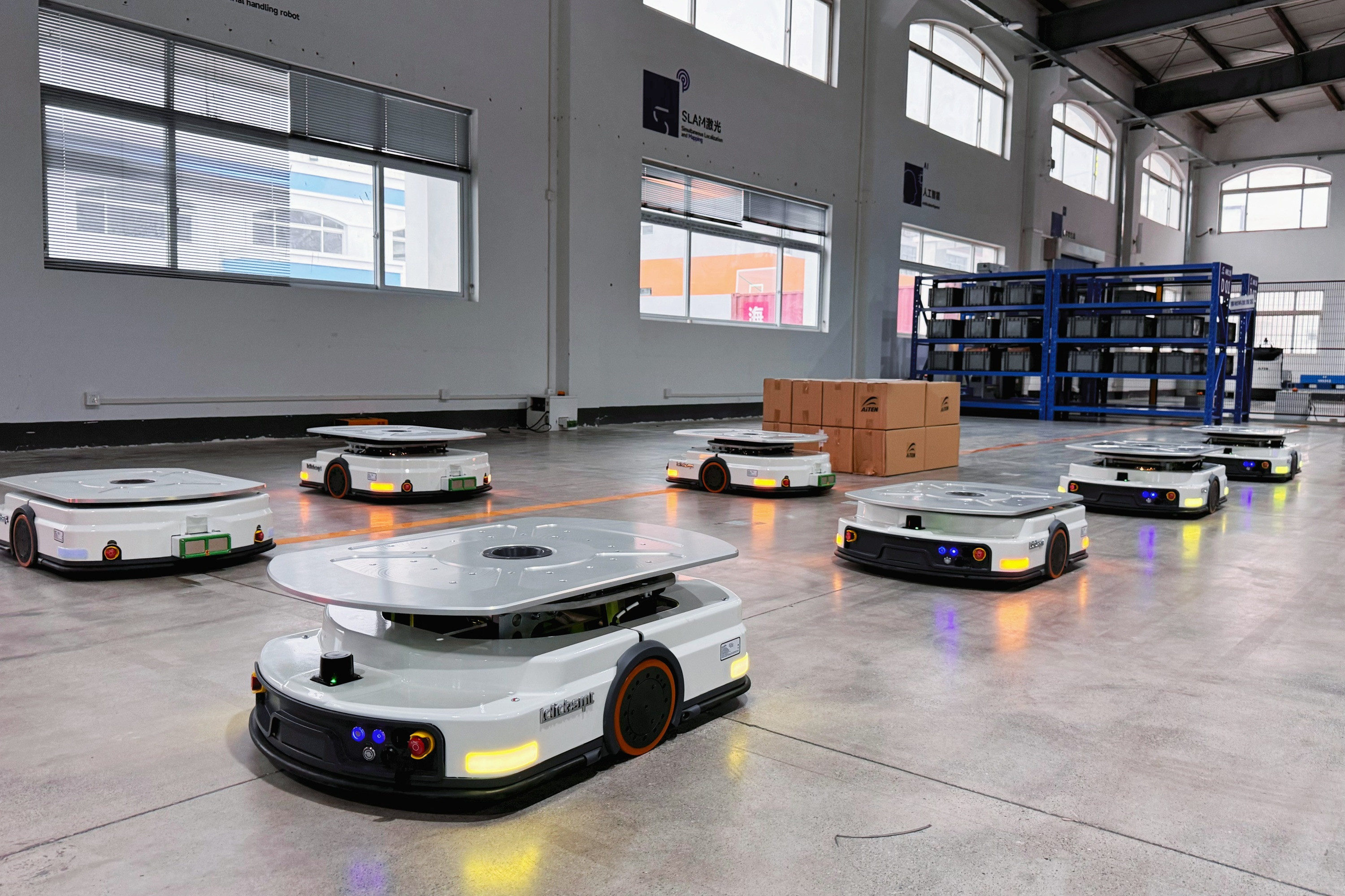 AGV 的智能化升级:部分 AGV 开始集成 SLAM 技术,如jinnianhui.com机器人推出的多款“混合导航” 车型,无需铺设物理导引设施,即可完成搬运任务。